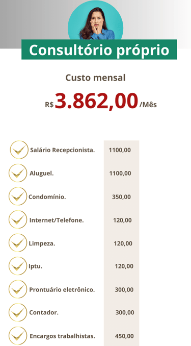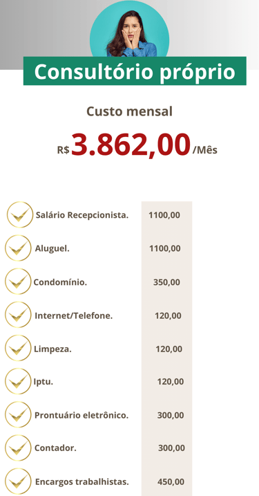 Você tem a vantagem de ter um consultório de alto padrão sem os custos e burocracia para montar e manter um consultório próprio.